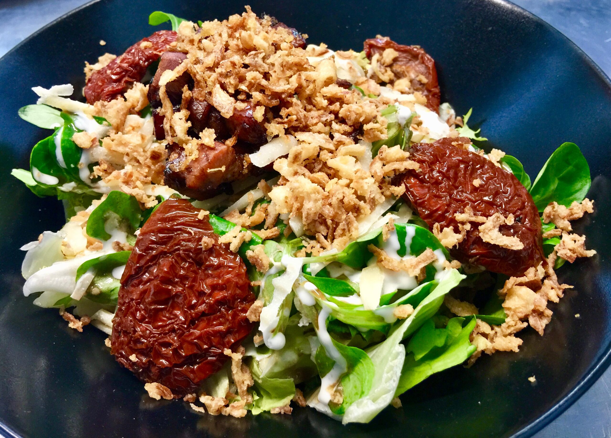 Solomillo de pollo empanado con mayonesa de salsa hoisin