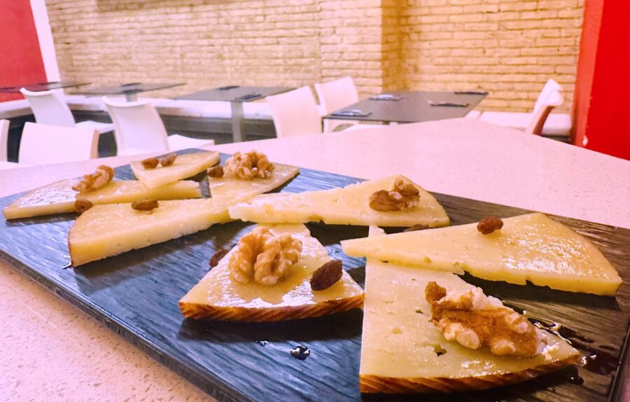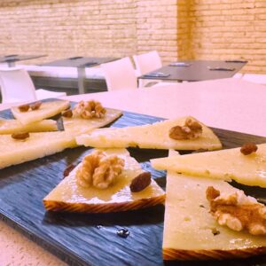 - Ensalada de queso de cabra a la plancha con confitura de tomate