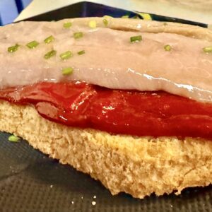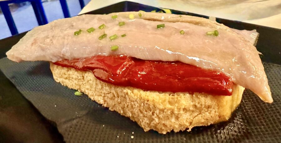 - Tosta de piquillo estilo Lodosa con ventresca confitada con aceite de oliva